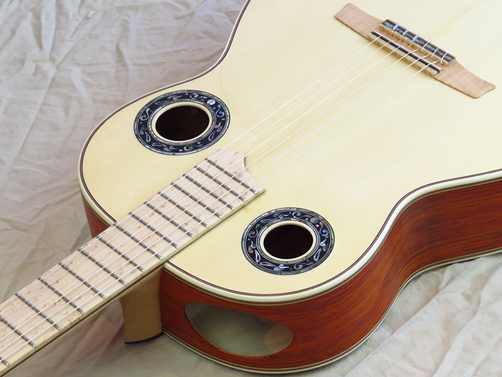 Every instrument has an effect on us, even if you sometimes can't notice that. Sometimes one realizes it suddenly when one see oneself playing better and, I feel that, thanks to this double cut away guitar, now I can actually play better both guitars.